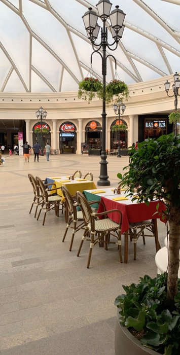 يشكل مجمع الأفنيوز الموجود في مدينة المنامة عاصمة البحرين مركز جذب سياحي هام يستقطب أعدادًا كبيرة من السياح والمحليين على السواء حيث حرص المهندسون على تصميم الجزء الأكبر منه تحت سقف زجاجي يسمح بدخول أشعة الشمس إلى داخله مع إمكانية التحكم بدرجة الحرارة عبر أنظمة التبريد وبهذا يكونون قد أتاحوا لسكان المنامة وزوارها إمكانية الاستمتاع بتجربة الأسواق المفتوحة.