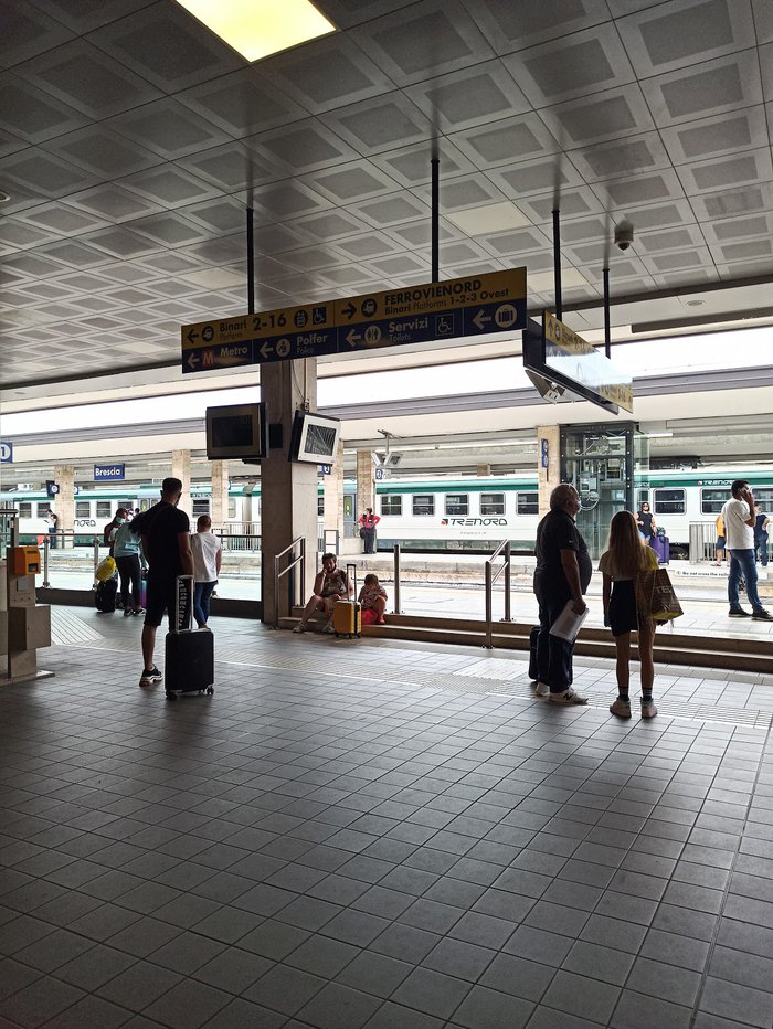 تعتبر محطة بريشا للقطارات المحطة الرئيسية في المدينة، إذ يستخدمها حوالي 60 ألف مسافر بشكلٍ يوميّ، وما يقارب 20 مليون سنوياً، وقد تمّ بناؤها عام 1854م وتقع في الجهة الجنوبية الغربية من المدينة، وتحتوي على 11 مساراً ثلاثة منها رئيسية، وتصل المحطات بين مجموعة من المدن الإيطالية مثل خط ميلان-البندقية، وخط تورينو-البندقية وغيرها من الخطوط.