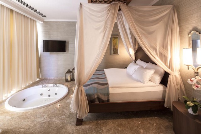 يقدم الفندق مجموعة متنوعة من الغرف والأجنحة والفيلات ، تتميز جميعها بتصميمات أنيقة وألوان راقية. يشمل أجنحة للعروسين وأجنحة للعائلات.